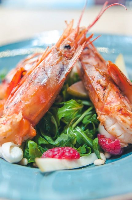 На раскаленной сковородке пожарьте креветки с фритюрным пальмовым маслом до золотистой корочки.