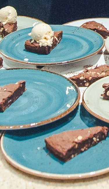 На тарелку выложите каштановый пирог и украсьте шариком мороженого.
