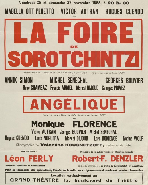 Афиша спектакля «Сорочинская ярмарка» (фрагмент). 25 и 27 ноября 1955. Гранд-Казино Женевы, Женева, Швейцария. Русский национальный музей музыки, Москва