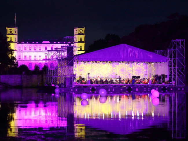 Белое озеро у Гатчинского дворца превратится на одну ночь в сцену, а его берега — в зрительный зал. В окружении старинного Гатчинского парка прозвучит классика: сюита из «Лебединого озера» и Славянский марш Чайковского, Симфония № 40 соль минор Моцарта, «Рапсодия в стиле блюз» для фортепиано с оркестром Гершвина и популярные симфонические миниатюры. Выступать будет Оркестр Михайловского театра и камерный оркестр театра «Мюзик-холл» «Северная Симфония».