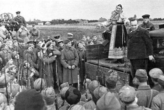 Фронтовая бригада московских артистов на Южном фронте. Выступление Лидии Руслановой. Фотография: hrono.ru