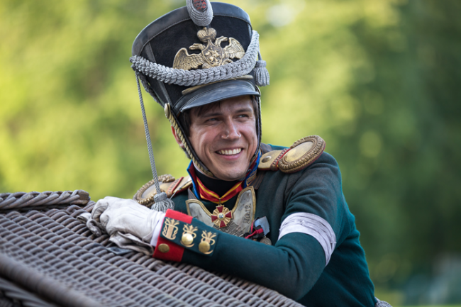 — Для меня было очень важно положение рук при военной выправке. Я общался с реконструктором по поводу того, как офицеры держат саблю, ножны, в каком положении находится кисть. Но у нас много сцен, где они неформально общаются друг с другом. Они же были живыми людьми, могли расслабиться, и я хотел понять, как они вели себя в светском обществе. Я вспомнил, что мы когда-то делали спектакль «Анна Каренина» в театре Вахтангова с Анжеликой Холиной, и она настаивала, чтобы мы правильно держали руки: кисти не должны болтаться, это придает строгость, элегантность. Мы же, разговаривая, все время жестикулируем, а тогда такого быть не могло. Я старался на съемках не делать лишних движений и не отвлекаться на то, что у тебя все время болтаются руки перед лицом. (Смеется.) Такие детали, добавленные в образ, очень помогли.
