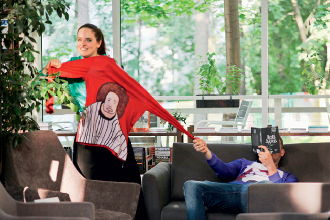 Евгений: Пятый год, кажется. Я с Катей время не считаю. (Улыбается.) Вот мы с вами сидим в «Гоголь-центре», а здесь рядом, во дворах, общежитие, где мы как раз впервые встретились. У меня тогда был непростой период, и несмотря на то, что я уже начал работать у Кирилла Серебренникова, денег не было, я практически голодал, и меня там приютили товарищи. Отвели мне место на крохотном книжном складе, и я, будучи книгочеем, весьма символично спал на литературе, постелив одеяло. И как-то раз Катя пришла в это общежитие в гости к подруге.