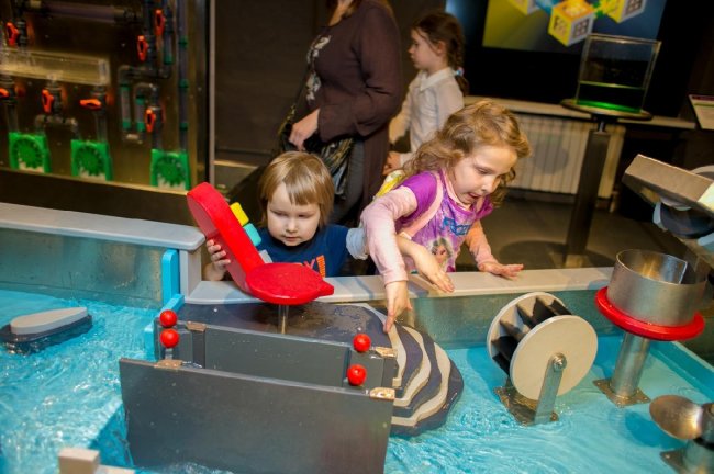 В новом музее на Ленинградском проспекте также появилась уникальная и единственная в России интерактивная водная инсталляция, где можно изучить законы гидродинамики, познакомиться с механизмом образования водоворота и морских волн, а также узнать, как работают шлюз и водяная мельница.