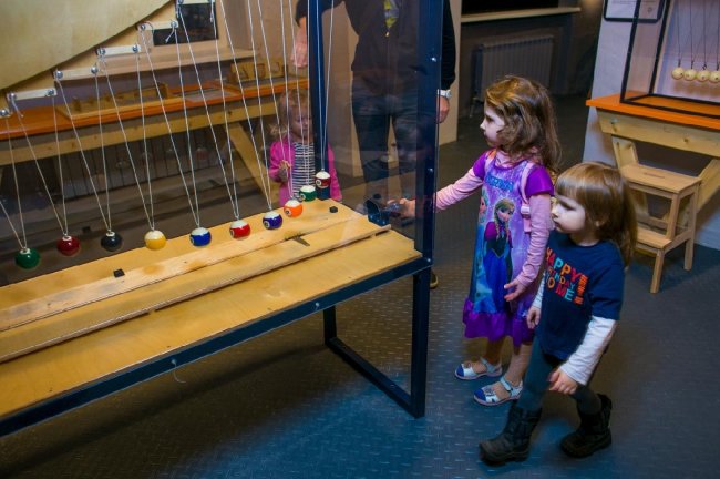 Каждый зал в музее посвящен отдельной области физики, таких как акустика, оптика, электромагнетизм, электричество, механика. В них находятся экспонаты, с которыми можно взаимодействовать: исследовать, собирать, разгадывать головоломки, дергать, прыгать и даже кричать.