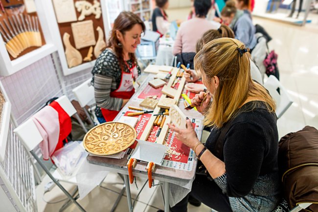 Каждый день с 11:00 до 20:00 на трех этажах атриума «Огонь» можно знакомиться с последними новинками хобби-рынка, участвовать в мастер-классах и создавать оригинальные новогодние подарки ручной работы.