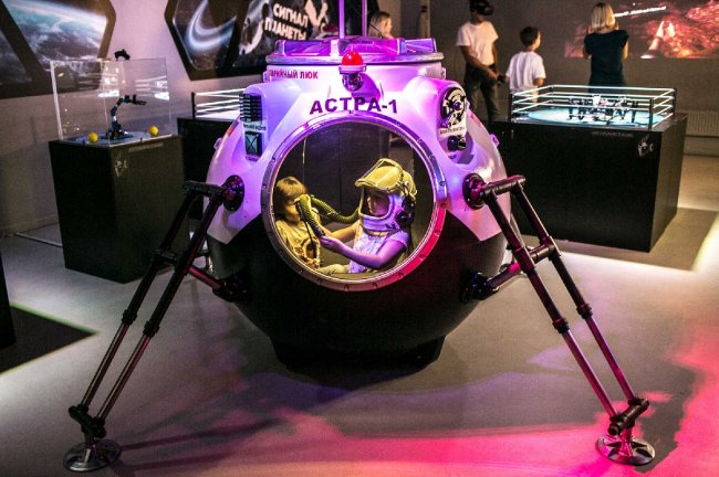 Выставка «Сигнал с планеты Х»В зале установлен интерактивный космический посадочный модуль «АСТРА-01», в котором дети могут крутить курсовые приборы, нажимать десятки кнопок и переключателей. А примерив на себя настоящий гермошлем, любой желающий сможет почувствовать себя космонавтом.