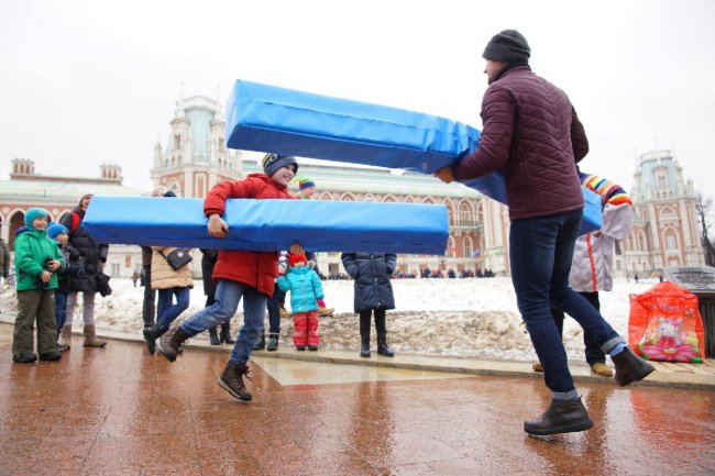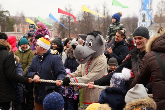 1 марта, с 12:00 до 16:00 на площади у Большого дворца можно будет посетить масленичные гулянья с народными играми — бросанием валенок, борьбой мешками и, конечно, перетягиванием каната. На площадке «Весна с Зимой борются» можно будет принять участие в боях с мешками на бревне — традиционной зимней забаве, символизирующей противостояние времен года.