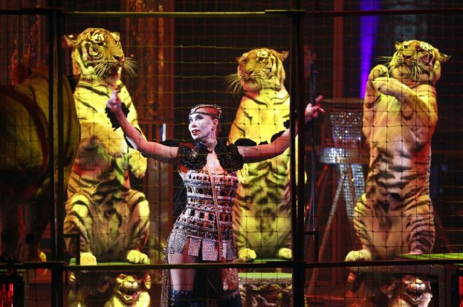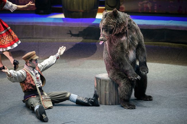 Также в программе будут групповые кардепарели (номера на канатах), групповая вольтижная акробатика, номера на вертикальных канатах, жонглеры и уникальный балет. В представлении задействованы медведи, лошади и тигры.