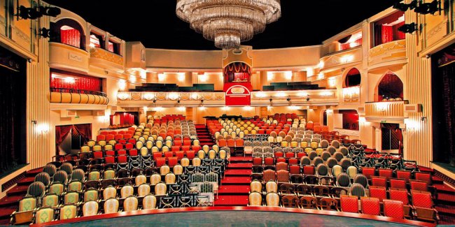 Помещения здания оформлены с использованием элементов различных стилей. Например, оформление трёх гардеробных окон различно: одно стилизовано под русский терем, второе выполнено в готическом стиле, а третье — в стилемодерн. Кресла Большого зала выполнены в одиннадцати различных стилях: раннее и позднее барокко, Людовика XV, модерн, неоклассицизм, рококо и другие.