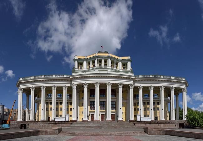 Центральный академический театр Российской Армии23 февраля 1934 года, к пятилетнему юбилею театра Красной Армии, по итогам конкурса на лучший проект здания для театра, была принят проект архитекторов Каро Алабяна и Василия Симбирцева. Огромная пятиконечная звезда — здание театра Красной Армии — является памятником не только театральной архитектуры. Это памятник эпохи тяжелых испытаний и великого энтузиазма. Строили его с 1934 по 1940 год.