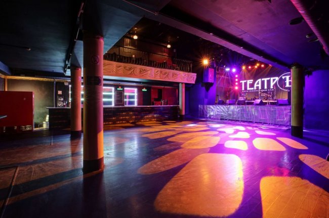 Клуб «ТеатрЪ»Широкая входная группа поможет вам быстро преодолеть путь от входа до 12 метровой сцены, а 14 метров свободного пространства от пола до потолка позволяют реализовать любые проекты. 50 кВт звука и новейшие технологии световых решений не оставят равнодушными ни одного исполнителя, слушателя и организатора.