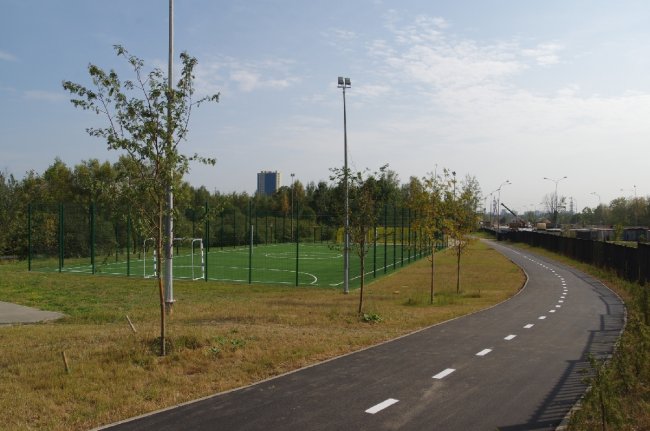 Здесь также обустроены детский городок, спортивные площадки для игры в теннис, футбол и волейбол, открыты скейт-парк и пункт проката спортивного инвентаря. Зеленая территория оснащена системой видеонаблюдения, а за соблюдением общественного порядка следит охрана.