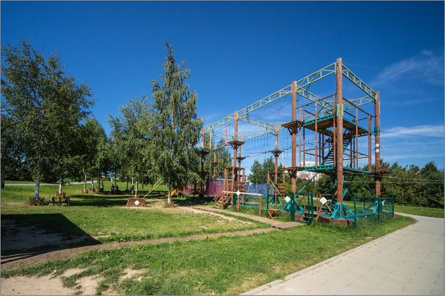 В парке имеется разветвленная дорожно-тропиночная сеть, связанная с системой деревянных набережных. Сквозь парк пролегают удобные пешеходные, беговые и велосипедные маршруты. Тщательно продумано вечернее освещение парка, чтобы гости могли с удовольствием отдохнуть не только в дневное время.