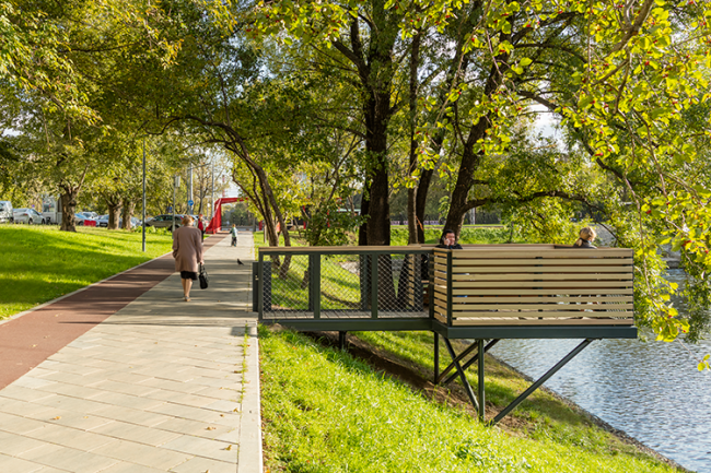 В уже сложившуюся ткань зеленых насаждений добавлены многолетние растения, призванные подчеркнуть природную красоту Красногвардейских прудов, а также создать недостающий средний ярус, состоящий из различных кустарников и растений, специально подобранных для этой территории.
