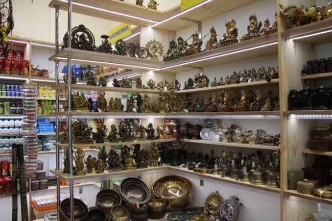 В большом ассортименте представлена аюрведа, косметика, восточные сувениры, ритуальные предметы, товары для йоги, товары фэн-шуй, фильмы, этническая музыка, книги по всем духовным направлениям и многое другое! Работает вегетарианское кафе.