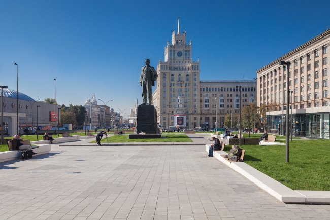 Триумфальная площадьНа другой стороне площади, у гостиницы «Пекин», до 1974 года стояло здание, где размещалась студия «Современник». Позже труппа переехала, а ветхий дом разобрали. И в довершение следует упомянуть еще один театр. Правда, вместо сцены здесь был большой экран. Это самый старый московский кинотеатр.