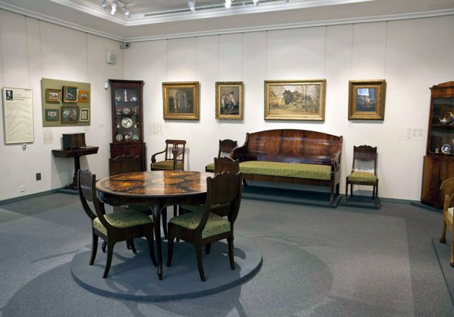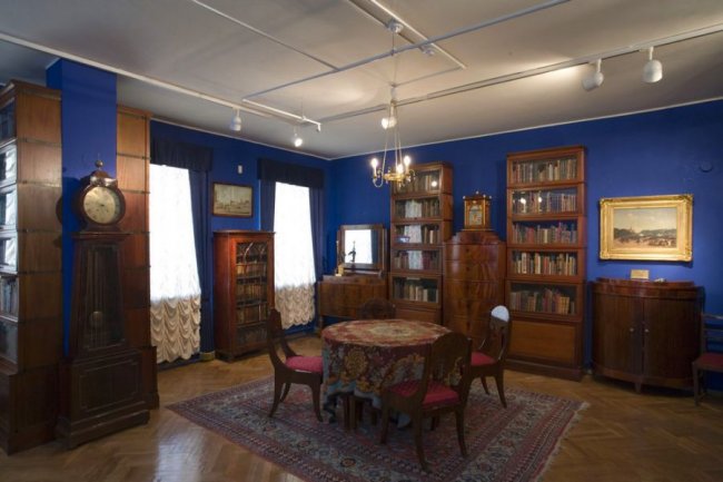 Государственный музей А.С. ПушкинаОсновная экспозиция музея носит название «Пушкин и его эпоха» и насчитывает свыше 165 тысяч музейных экспонатов. В коллекции музея сохранились не только работы А.С. Пушкина, но также предметы изобразительного искусства мировой значимости — работы Кипренского, Брюллова и Бакста.