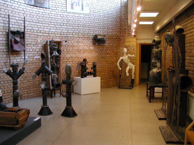 Вершина творчества мастера — ассамбляжи. Они занимают главное место на выставке. Всего представлено около двухсот рисунков, скульптур, стихов, личных вещей и авторских набросков. И в них всех сквозит главная мысль: «Главное зло на Земле — насилие».