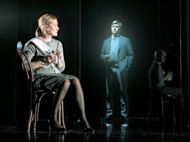 Вот некий Андре, старик, в домашней пижаме, с неловкими движениями. А вот его дочь Анна, симпатичная такая, но сжатая, как пружина. Говорят о простых вещах (квартира, медсестра, предстоящая поездка) простыми короткими фразами, и из их диалогов постепенно складывается мир, название которому, наверное, ад. Прозрачные стены ходят бесшумно и ритмично (удивительная сценография Николая Симонова), открывая мир, где — стол, дочь, диван, муж, и все по два — у Андре раздвоение сознания. Как с этим жить — ему самому и Анне? Как справиться? И болезнь ли это? Уверена, что эти вопросы задает себе каждый, кто в напряженной тишине, где муха, кажется, не пролетит, сидит в зале.