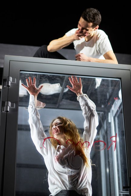 «Верона. Воскресенье. День» (Капулетти устраивает бал для знакомства Джульетты и ее потенциального жениха Париса). Бегущая строка жестко хронометрирует события, не оставляя места для романтических сантиментов. Первая встреча Ромео (того, кто двумя сценами раньше всадил нож в тело) и Джульетты, которая похожа на подростка с непростым характером, лишена какой бы то ни было романтики. Нет-нет, тут без этого: все просто, даже грубовато, как в жизни, но в том-то вся и штука, что за этой привычной, небрежной манерой общения — живое чувство, ощущения от сегодняшней жизни, которая при всей ее технической продвинутости на наших же глазах теряет человеческий облик. И от сегодняшних московских людей, которые отчего-то при всех своих демократических установках и свободе сменили доброту на агрессию. Особенно в соцсетях. И это живое чувство будет только нарастать, и вся постановка этим подлинным чувством будет наполняться, крепнуть, заставляя включиться в до боли знакомый сюжет.