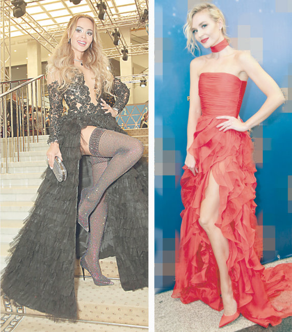 Полина Гагарина и Анна Калашникова при желании могли бы устроить битву платьев. Выбранные ими наряды сложно назвать скромными, и неудивительно, что фотографы не давали девушкам прохода.