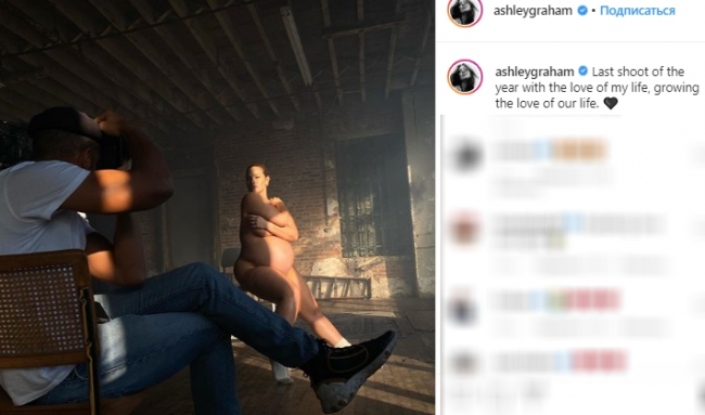 Уже в грядущем январе у 32-летней Эшли Грэм и видеооператора Джастина Эрвина должен родиться ребенок. Но девушка продолжала сниматься даже на поздних сроках беременности. Несколько часов назад на ее личной странице «Инстаграма» появился кадр с бэкстейджа одной из свежих съемок — последней в этом году, где в роли фотографа выступил ее избранник.