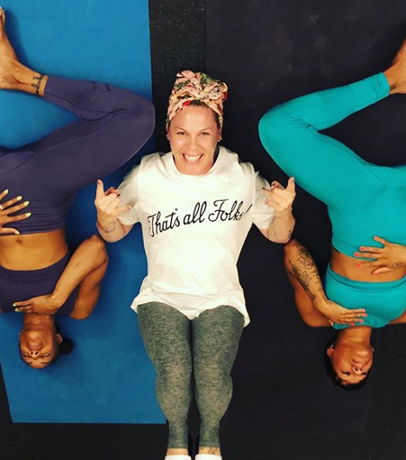 Чтобы поддерживать себя в форме, Пинк сочетает разные виды тренировок: гребля, бокс, танцы, йога, пилатес, силовая ходьба, бег и велосипед. Тренируется 5-6 раз в неделю по полтора часа. Отдельный акцент Пинк делает на тренировке тазовых мышц и поперечного брюшного пресса — это особо важно после родов.