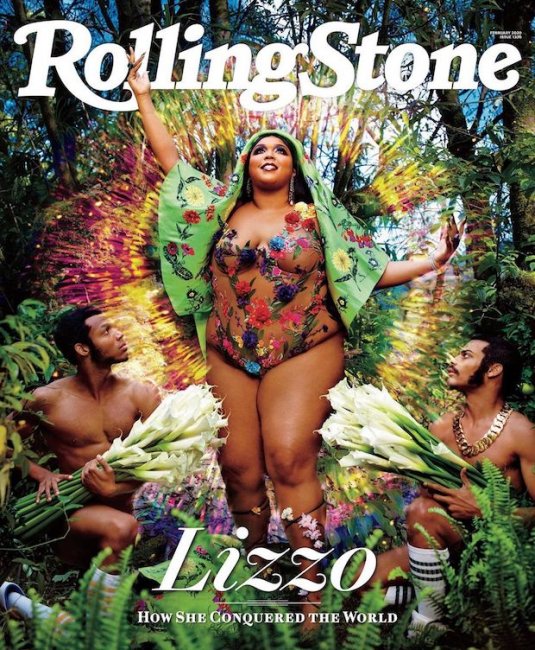 Для фотосессии раскованная артистка примерила множество ярких образов с минимумом одежды. Обложку издания украсил снимок, на котором Лиззо предстает в роли экзотической лесной богини плодородия. Она одета в полупрозрачное боди с вышивкой в виде цветов, а к ее ногам склонились мускулистые слуги с охапками белых калл в руках.