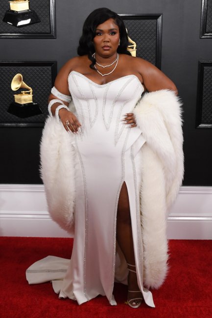 Самой яркой звездой вечера стала 31-летняя певица Lizzo, пропагандирующая бодипозитив. Она появилась в белом вечернем наряде в пол Versace с высоким разрезом до бедра и отрытой зоной декольте и в украшения Schwartz jewelsс. На плечи Лиззо, номинантка на «Грэмми» сразу в восьми категориях, накинула белую меховую шаль.