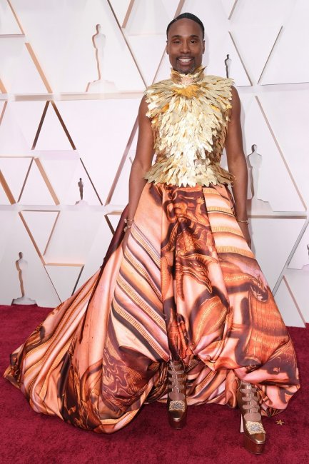 Актер Билли Портер вместе с Жанэль Монэ открыл церемонию. А для красной дорожки он надел роскошное платье Giles Deacon. Артист также примерил туфли на высоком каблуке в тон наряду.