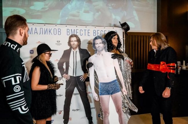 В одном из элитных кинотеатров Москвы состоялось светское мероприятие с участием Дмитрия Маликова. Началось все весьма неожиданно — к гостям вышли ведущие Никита Шиповский и Ася Гуменюк с сообщением, что артиста похитили и никто не может его найти. Вместо него пришлось вынести обнаженную фигуру исполнителя, вырезанную из картона, чтобы хоть как-то сгладить произошедший форс-мажор.