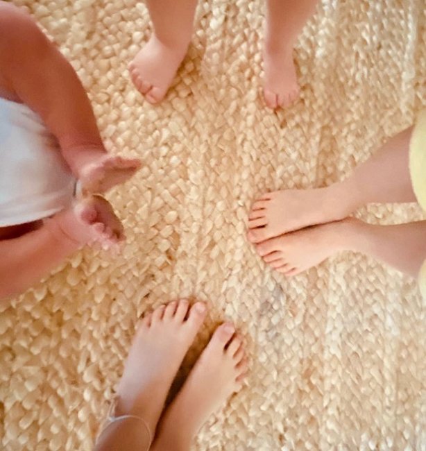 Айда опубликовала в Instagram снимок со всеми детьми, показав лишь их ножки. К слову, супруги редко показывают малышей в социальных сетях и скрывают их лица.