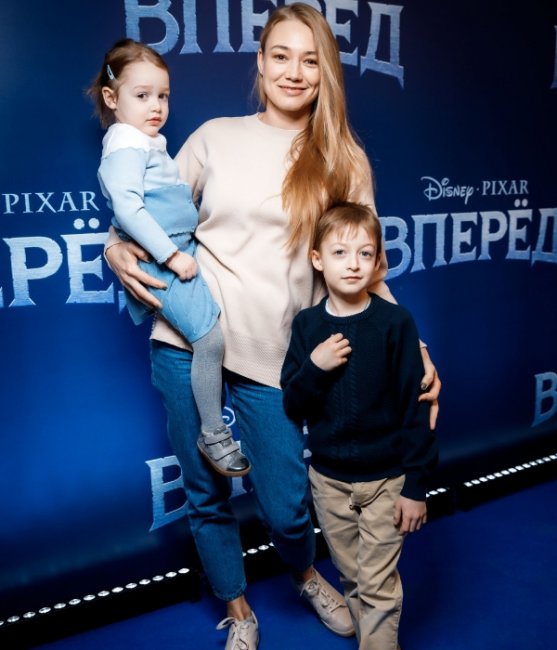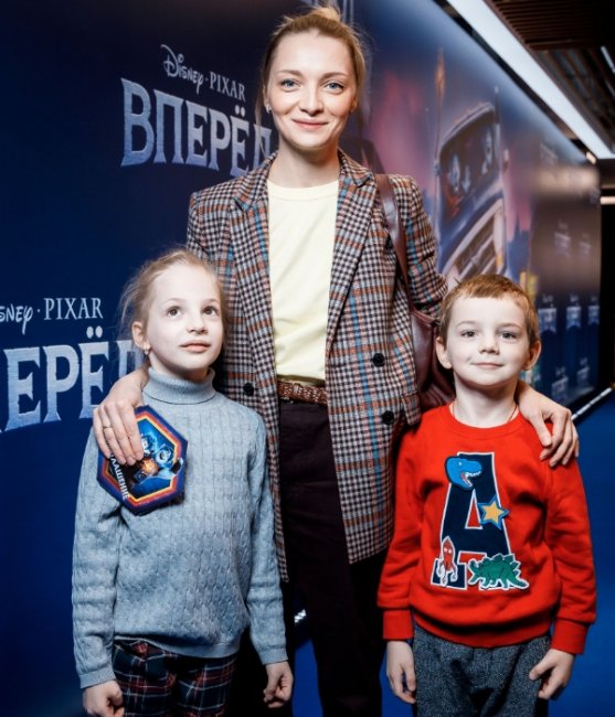 Актриса Екатерина Вилкова посетила премьеру с детьми.