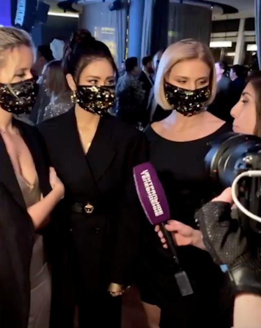 Судя по сторис певиц в Instagram, они не снимали аксессуар даже во время торжественного ужина. Вероятно, так группа «Фабрика» привлекает внимание к проблеме вспышки коронавируса. Известно, что в 76 странах мира заражено более 95 тысяч человек.