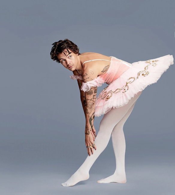 Гарри уже использовал предметы женского гардероба для фотосессий. Ранее он позировал в образе балерины, надев розовую пачку и белые колготы. Также он иногда появляется на красной дорожке с яркими аксессуарами в виде ажурных рюш на блузе или ожерелья из жемчуга.