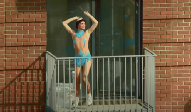 Артисты зажигательно танцуют в ярких и эпатажных костюмах на балконах, напоминая зрителям флешмоб в Италии. Во время карантина итальянцы выходили на балконы своих домов, чтобы развлечься и пообщаться с соседями.