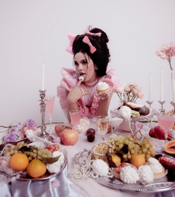 Валя грациозно сидела на столе со множеством угощений: фруктами, десертами и бокалами с розовым напитком. Бывшая девушка Егора Крида вдохновилась образами 18 века, но для своего праздничного наряда предпочла более смелые элементы.