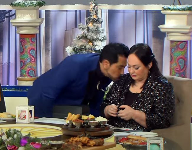 Еще в начале выпуска телеведущая рассказала, что была знакома с Руссо, когда он был совсем юным артистом, и рада, что он сделал такую карьеру. Авраам, преподнес подарок, а потом сделал неожиданный шаг — поцеловал Гузееву в плечо, отметив, что привит. Лариса пошутила, что не может поцеловать артиста в это место.