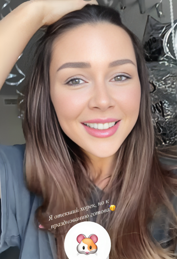 «Он меня называет хорьком, потому что меня раздуло. Причем почему-то с двух сторон, я не понимаю, как это работает... В общем, я сама как шарик сегодня, но, тем не менее, готова к празднованию», — рассказала своим фолловерам Анна.